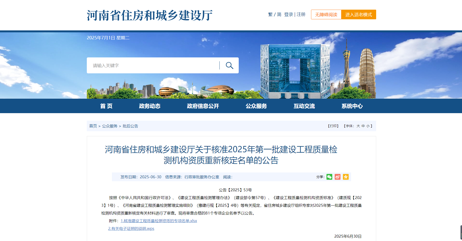 熱烈祝賀我司通過(guò)河南省住建廳2025年第一批建設(shè)工程質(zhì)量檢測(cè)機(jī)構(gòu)資質(zhì)重新核定!!!